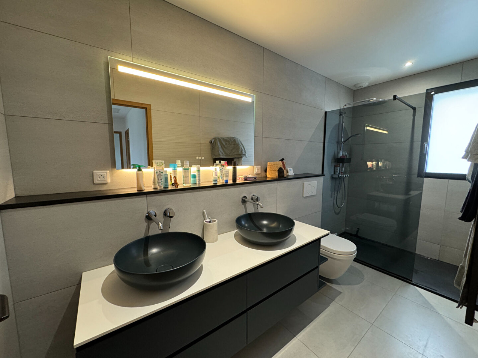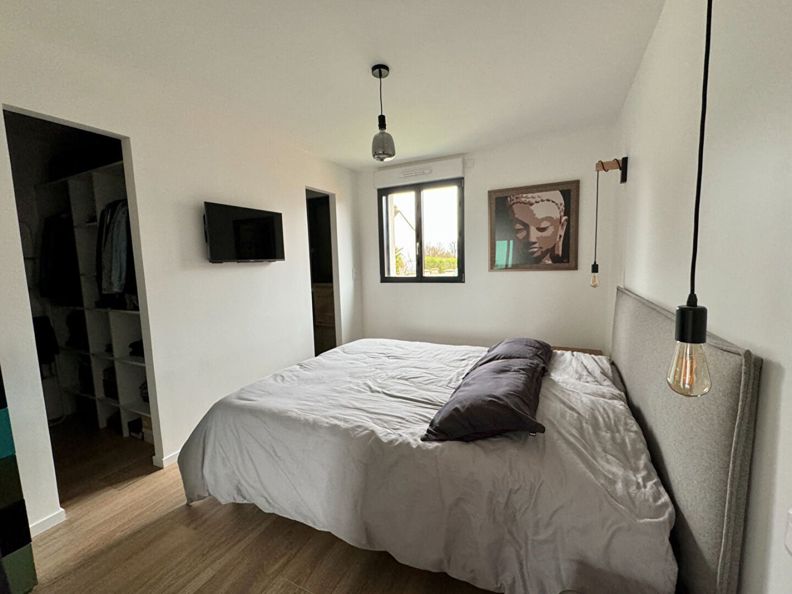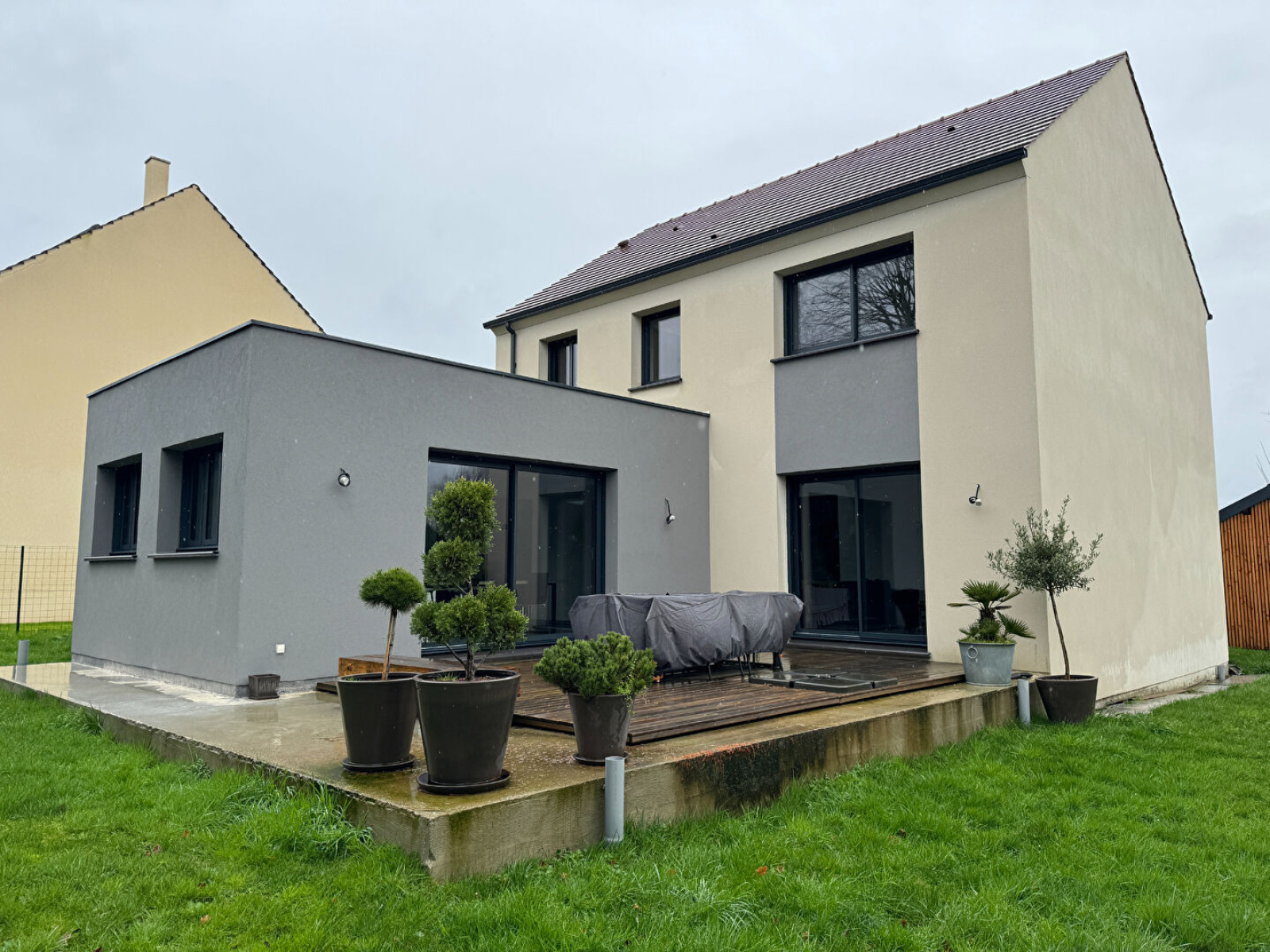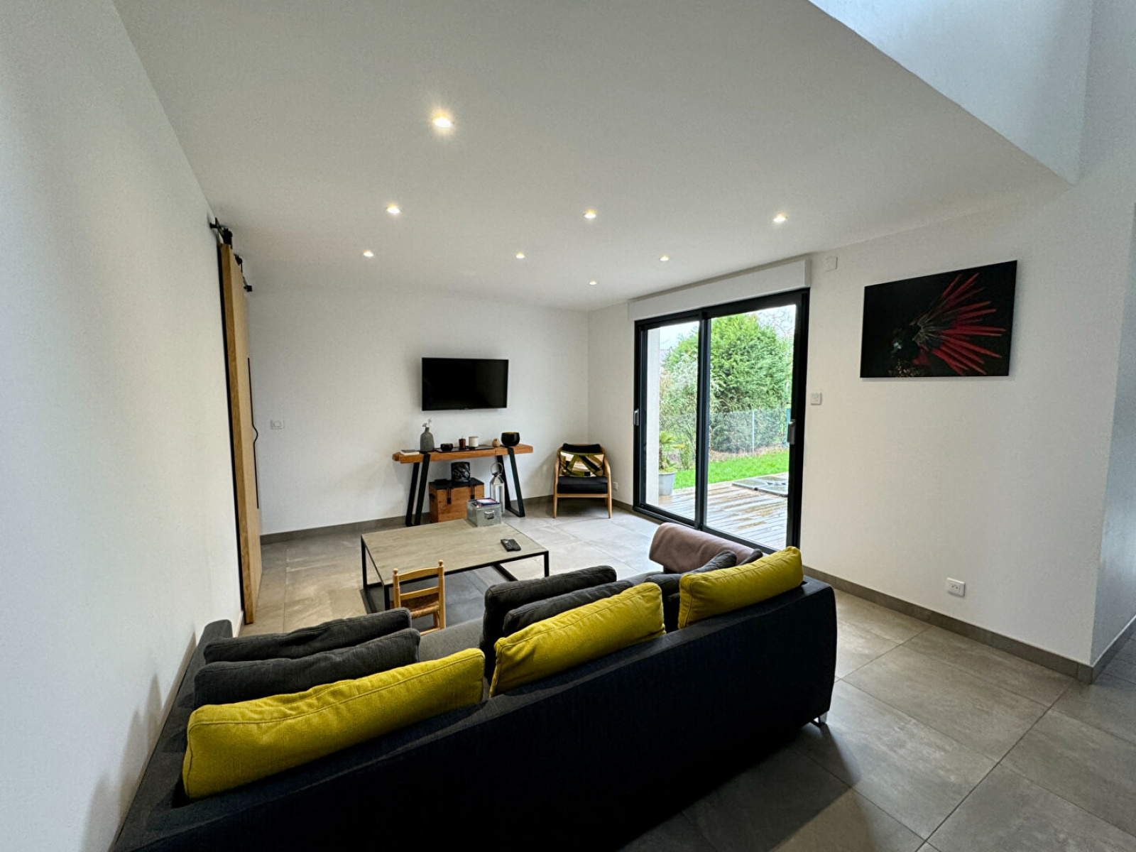Idéalement placée en impasse, à 2 mn des commerces et école à pied pour cette belle maison contemporaine édifiée en 2021 sur un jardin de 670 m² environ. Elle se compose en rez de jardin d'un séjour, grande cuisine aménagée, une chambre avec salle de douches et dressing, buanderie, wc. A l'étage, palier desservant quatre belles chambres, une salle de bains, wc. Garage et abri de jardin. Mandat : 4800
